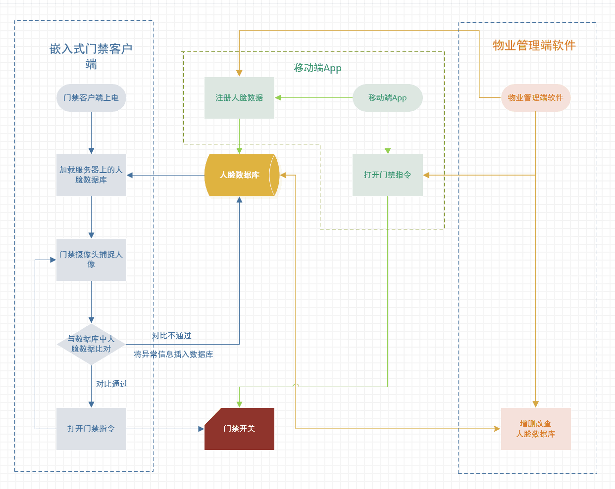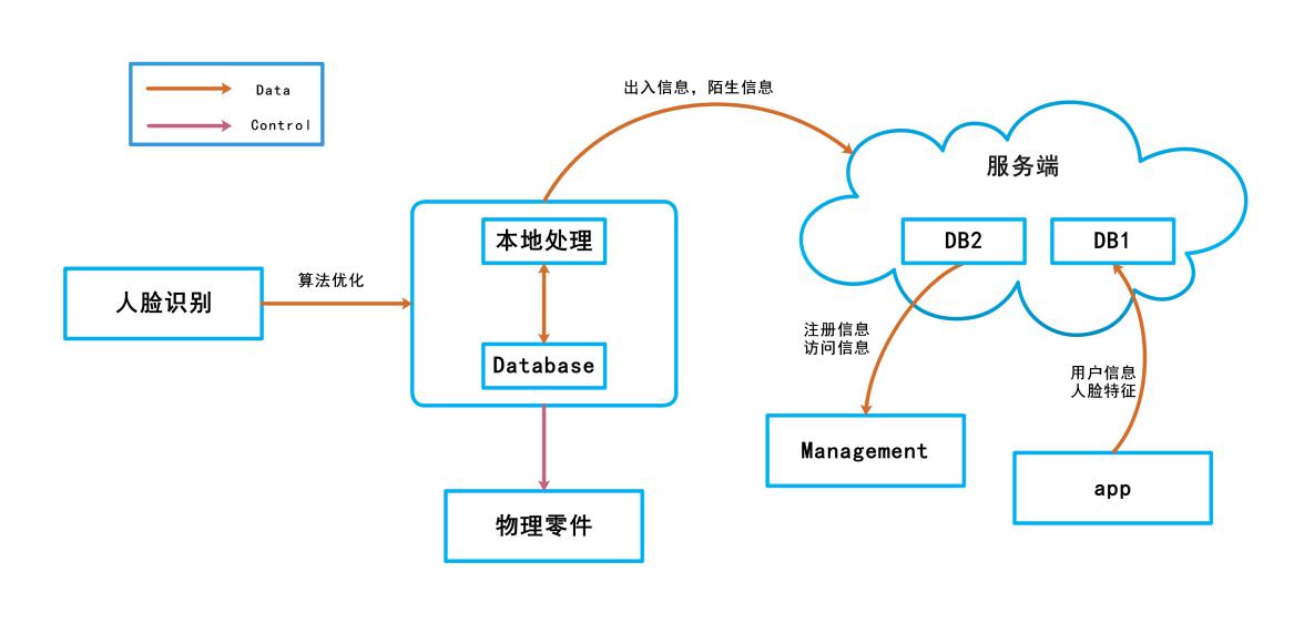 (4)云端服务器模块,将通过手机APP端和物业管理端注册的用户的信息以及其人脸特征存储在服务器中。