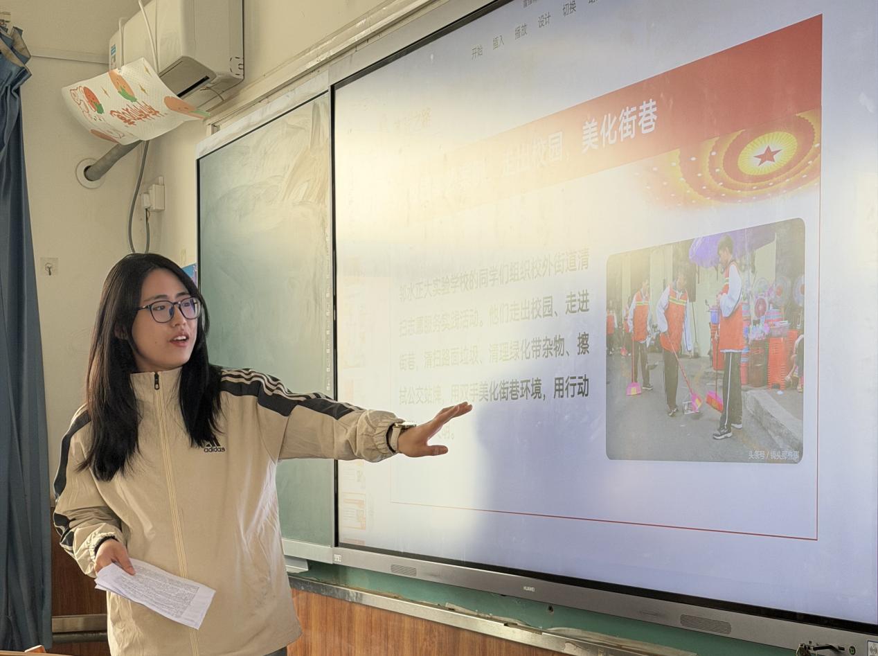 宣讲会上,支部成员围绕“精神之光”“榜样之力”“实践之路”“青春之问”四个篇章展开生动讲解。主讲人从雷锋同志“干一行、爱一行、钻一行”的敬业态度讲起,结合“钉子”精神的挤劲与钻劲,阐释雷锋精神不仅是助人为乐,更是一种积极向上的人生态度。宣讲中,11岁小员工坚持敬老服务、浙江“心安驿站”五年送出三万份爱心餐等鲜活案例,让在场同学们深受触动。当看到全国2.41亿注册志愿者的数据时,同学们纷纷感叹“原来每6个人中就有1个志愿者,我也要成为其中之一”。